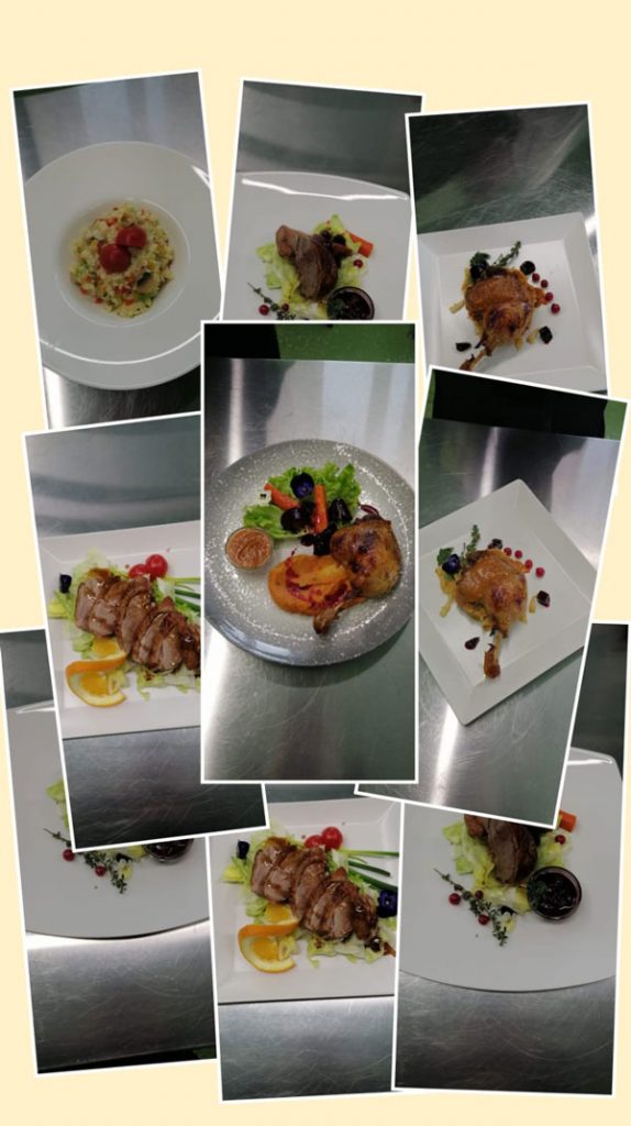 - prepararea sosurilor (brun, remoulad, tartar, alb, din vin, din cognac, reducții, sos de vișine, sos de ceapă caramelizată, sos de soia cu miere etc.)